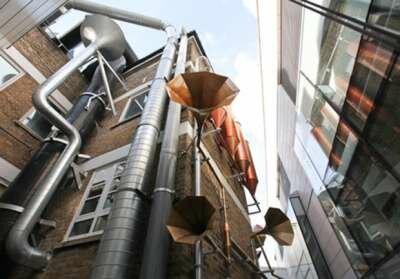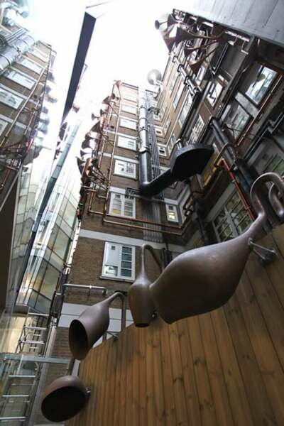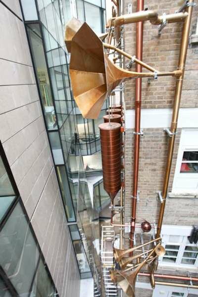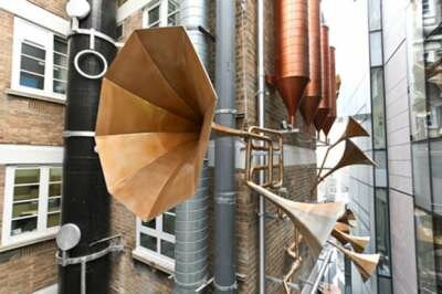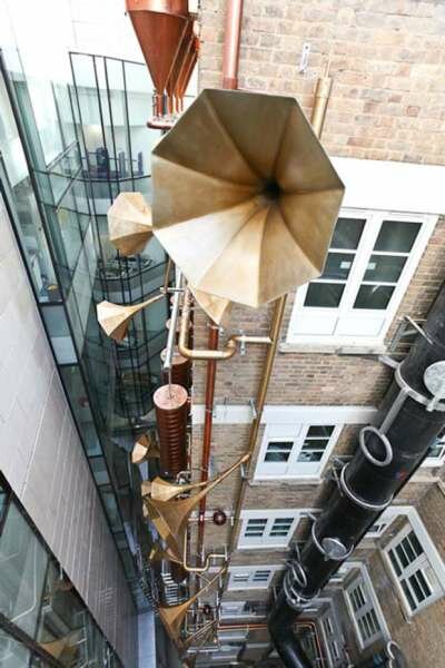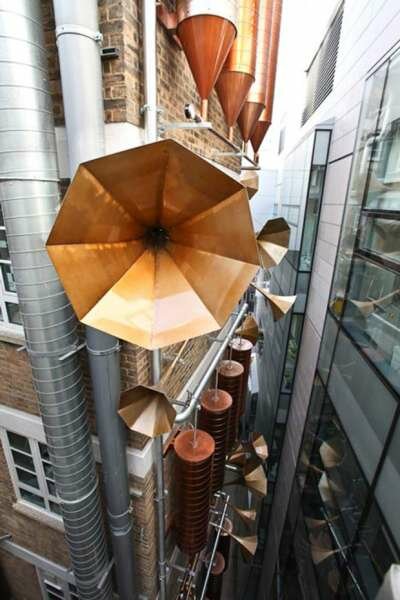 Дизайн-студия Weave в лице архитекторов Джи Эн и Марии Смит вдохновлялись лабиринтом дренажных систем и труб, которые уже охватывают многочисленные огороженные стены больницы. Внимание было обращено на то, как часто упускается из виду возможность создания фантастически интерактивной системы, которая позволила бы улучшить вид из окон действующей больницы, как пациентов, так и родных, и персонала. Дуэт повторно использовал серебряные, бронзовые и золотые металлические цвета, разнообразные приборы из бывшей котельной больницы, чтобы создать невероятную звуковую установку, которая достигает почти 10 этажей в высоту. «Целью нашего проекта было заново показать людям фасад старого корпуса, который до нас активно скрывали. Показать его качества и странности, создать здесь что-то уникальное», — говорят авторы. Надо сказать, что архитекторы наверняка приняли во внимание и то, что старый корпус был не самым лучшим видом из окон действующей детской больницы, а теперь маленькие пациенты могут видеть чудесную звуковую установку и слушать колыбельные. По-моему, абсолютно великолепно, и юные больные наверняка пойдут на поправку гораздо быстрее!