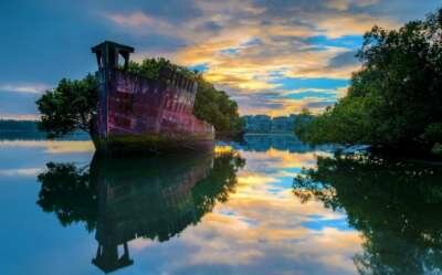Что именно случилось с теплоходом, никто не знает. Может, в него попал снаряд. Но скорее всего, его просто оставили, как отслужившего своё, не озаботившись утилизацией. И корабль обрёл не только новую жизнь, но и новое имя — “The Floating Forest” (Плавающий лес). Особенно прекрасен он на закате, и фотографы со всего мира приезжают к берегам Сиднея, чтобы заснять это чудо. Особенно много людей с техникой здесь на закате, когда получаются особенно шикарные снимки.