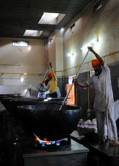 Лангар Золотого Храма – крупнейший в своем роде, и каждый день здесь обедает, в среднем, 40 тысяч человек. В праздничные и выходные дни эта цифра увеличивается до 100 тысяч людей. Обслужить такое невероятное количество посетителей без помощи добровольцев просто невозможно. Ниже вы узнаете ряд любопытных подробностей об организации труда в Лангаре.