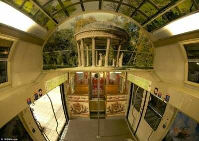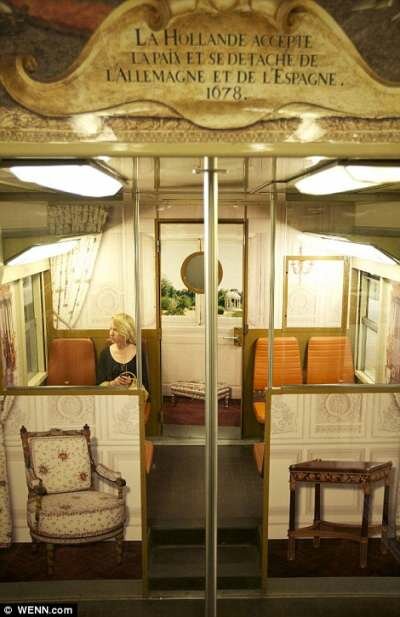 Один из поездов французского метро отделали в стиле версальского дворца, величественного и прекрасного. Каждый вагон — это одна из комнат дворца. Скульптуры, картины, даже библиотека изображены на стенках вагона. По замыслу все эти изображения должны напоминать о семи районах дворца и прилегающих территориях, в числе которых поместье Марии-Антуанетты, Зеркальный зал и Галерея битв.